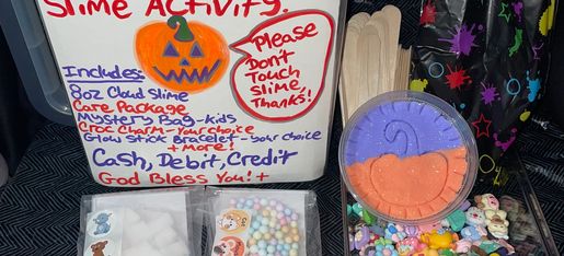 🎃 Included: 8oz cloud slime Pumpkin, pumpkin/regular clay pieces, glow bracelet, candy, animal croc charm, kid goodie bag, popsicle stick, foam beads or jelly cubes care package. God Bless You all! ❤️